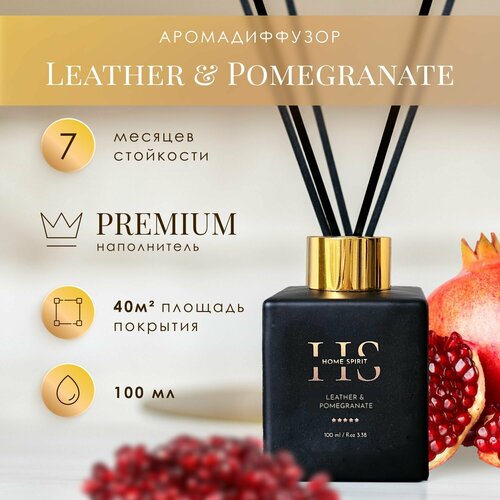Диффузор для дома HOME SPIRIT 100 мл. Аромадиффузор с пятью палочками, аромат Кожа и Гранат.