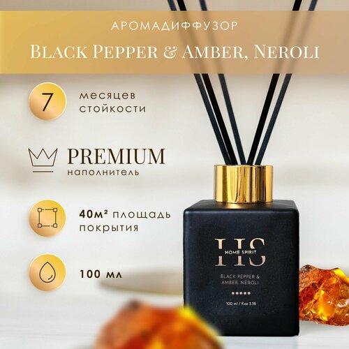 Диффузор для дома HOME SPIRIT 100 мл. Аромадиффузор с пятью палочками, аромат BLACK PEPPER & AMBER, NEROLI.