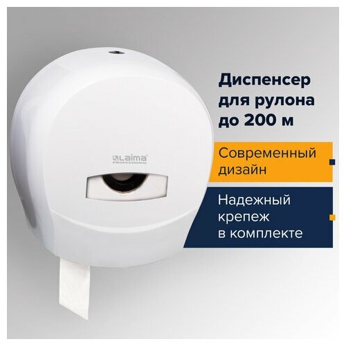 Диспенсер для туалетной бумаги LAIMA PROFESSIONAL ORIGINAL (Система T8), белый, ABS-пластик, 605769