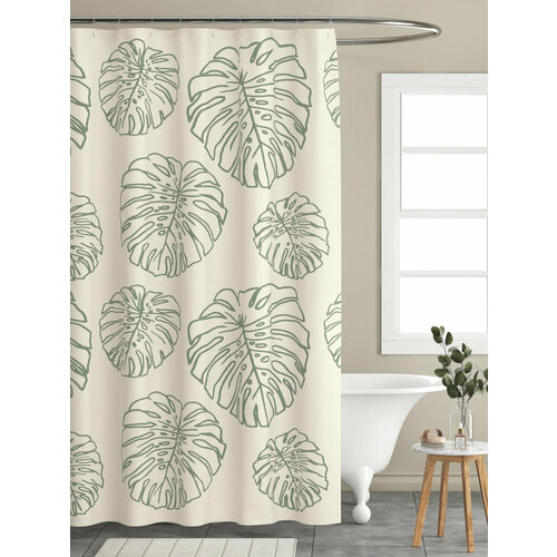 Шторка для ванной DeNASTIA с водоот. пропиткой, 180x200см, "тропики", цвет молочный/зеленый