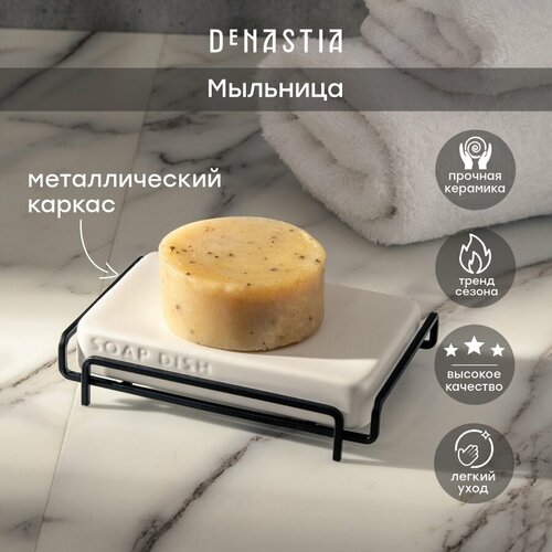 Мыльница DeNASTIA "IRON STAND" 13,5x9x3см, керамика/железо, белый