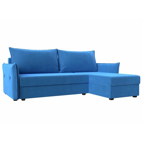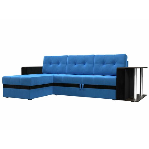 Угловой диван Лига Диванов Атланта М левый угол Велюр диван голубой/компаньон черный/вставка черная