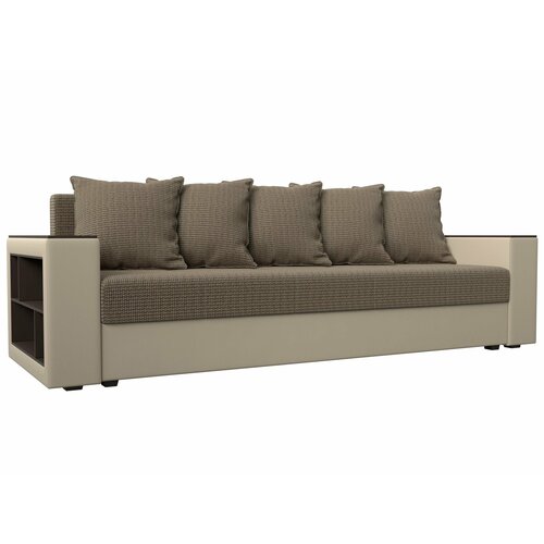 Диван прямой Лига Диванов Дубай Лайт полки слева Корфу 03 (рогожка)/Бежевый (экокожа)