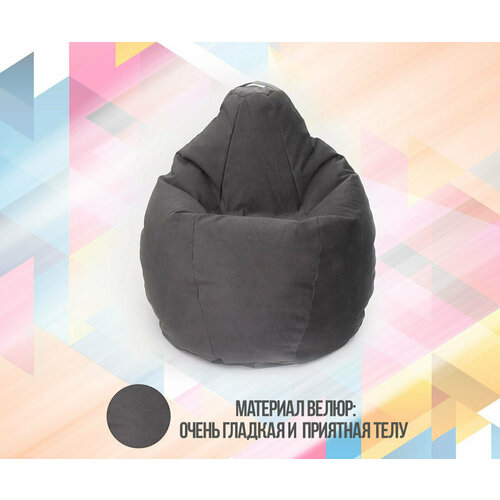 Пуф кресло мешок груша малый высота 90см бескаркасный для отдыха на балкон террасу веранду лоджию в игровую в холл в коридор пенополистирол велюр (темно-серый / темно-серый)