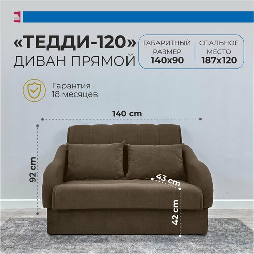 Диван - кровать Тедди. Материал Велюр. Цвет Коричневый. Размер 140*90*92. Наполнение высокоэластичный ППУ