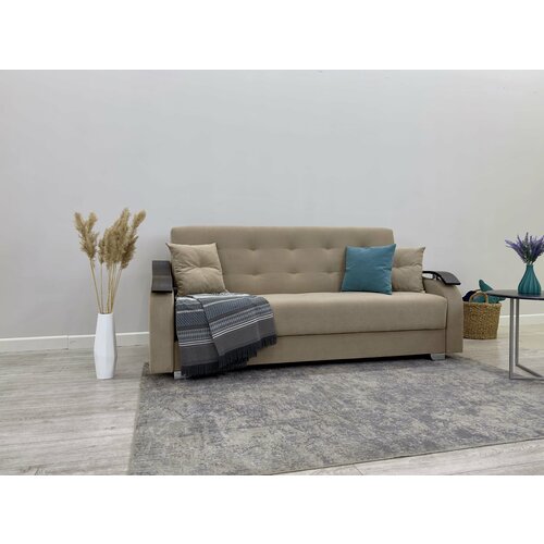 Анжела» привлекает к себе много внимания из-за своего строгого и классического дизайна. Компактный размер дивана впишется в любой интерьер, благодаря чему, его можно рассмотреть даже в студии, или одно комнатные квартиры. Комфортная и глубокая посадка придает дивану невероятный комфорт и удобство, а благодаря продвинутому наполнителю ПБ (Bonnel Spring) – который обеспечит вам анатомические свойства на протяжении всего сидения либо сна. Так же в комплект входят 2 декоративные подушки, который можно использовать как под изголовье так и под спину. Утяжки на посадочной и при спинной части выполнены из армированных ниток военного стандарта, который обеспечит вам долгий срок эксплуатации мебели. Каркас дивана выполнен из массива натурального дерева (березовая фанера), это обеспечит вам надежное соединение крепежной фурнитуры, и товар прослужит долгое время. Благодаря встроенным МДФ - накладкам в диван, можно ставить на него горячие предметы и не будут истираться материал. функциональность•