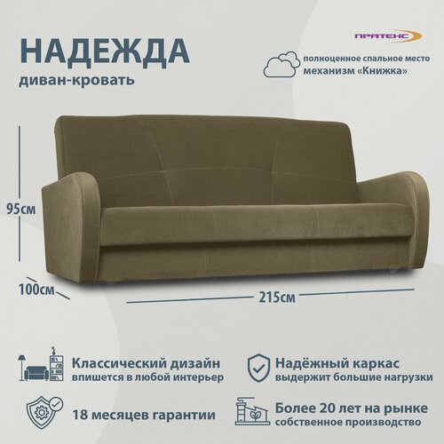Прямой диван, Диван-кровать Надежда Bergamo35, механизм Книжка, пружинный блок, 215х100х95