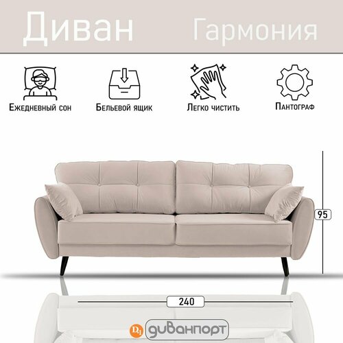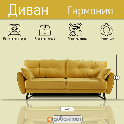 Диван-кровать, Прямой диван гармония, механизм пантограф, 240х105х95 см
