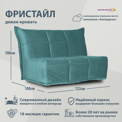 Диван-кровать фристайл 120. Прямой диван. Механизм Аккордеон, 123х100х100см. Зелёный велюр. Мягкая мебель для дома и дачи