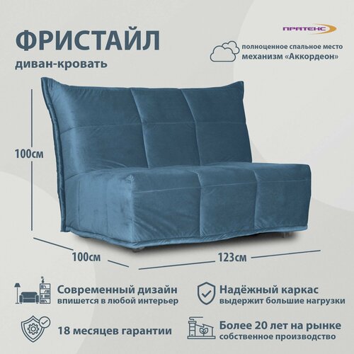 Диван-кровать фристайл 120. Прямой диван. Механизм Аккордеон, 123х100х100см. Синий велюр. Мягкая мебель для дома и дачи