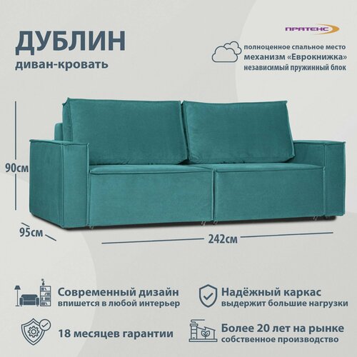 Диван прямой раскладной дублин. Механизм еврокнижка. Диван-кровать выкатной 242х95х90 см. Мягкая мебель для дома