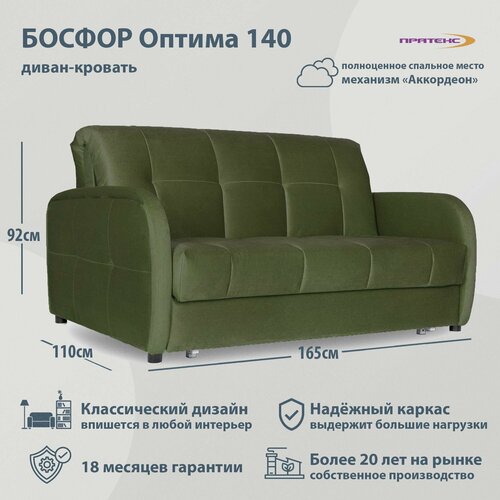 Цены на Диван-кровать Босфор Оптима 140. Прямой диван. Механизм Аккордеон. Велюр изумрудный. Мягкая мебель для дома и дачи зеленый в г. Москва