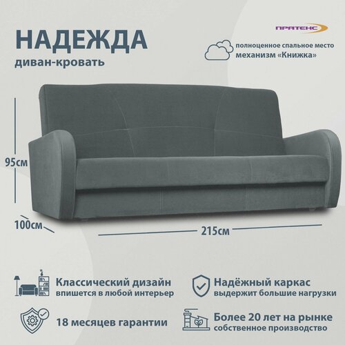 Диван прямой раскладной Надежда. Диван-книжка двухместный с пружинным блоком 215х100х95. Мягкая мебель для дома