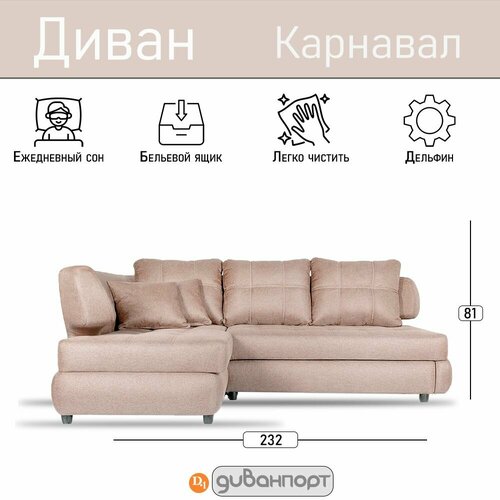 Диван-кровать, Угловой диван карнавал, механизм Дельфин, 232х168х81 см