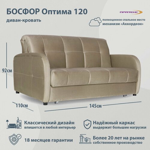 Диван-кровать Босфор Оптима 120. Прямой диван. Механизм Аккордеон. Бежевый велюр. Мягкая мебель для дома и дачи