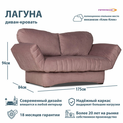 Диван-кушетка Лагуна, Kvadro7, с механизмом Клик-Кляк, 175х84х94см