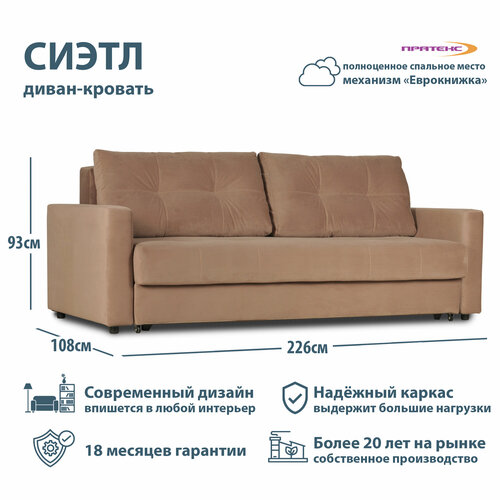 Диван-кровать прямой раскладной Сиэтл. Механизм еврокнижка. С пружинным блоком 226х108х93 см. Диван-кровать для дома