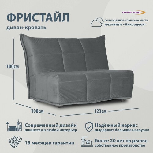 Диван-кровать фристайл 120. Прямой диван. Механизм Аккордеон, 123х100х100см. Серый велюр. Мягкая мебель для дома и дачи