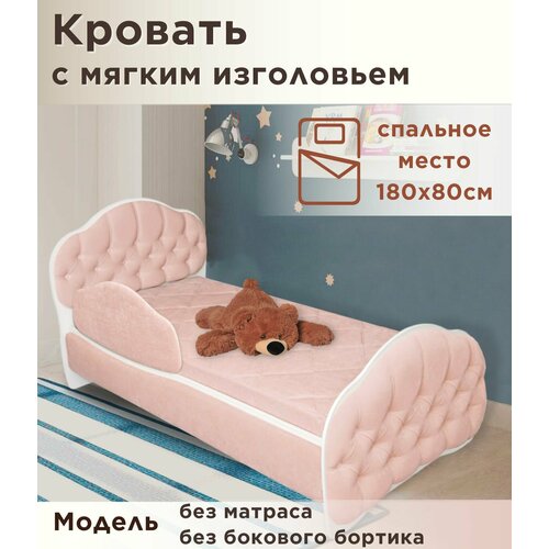 Кровать DarDav "Гармония" 180х80 см, цвет пыльно-розовый, с матрасом, наматрасником и мягким бортиком