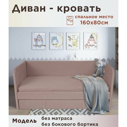 Диван-кровать детская "Бимбо" 160*80, цвет пыльно-розовый, с бортиком