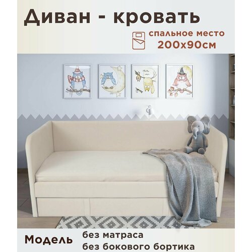 Диван-кровать имеет компактный размер, что позволяет сэкономить место в комнате. Он легко раскладывается в удобную кровать, которая может использоваться как дополнительное спальное место. Выкатной ящик, встроенный в диван-кровать, позволяет хранить постельное белье, игрушки или другие вещи, которые могут понадобиться ребенку. А также выкатной ящик может служить дополнительным спальным меестом.