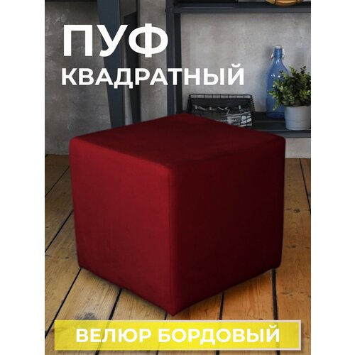 Пуфик куб для гостиной комнаты прихожей спальни велюр бордовый Grand Family