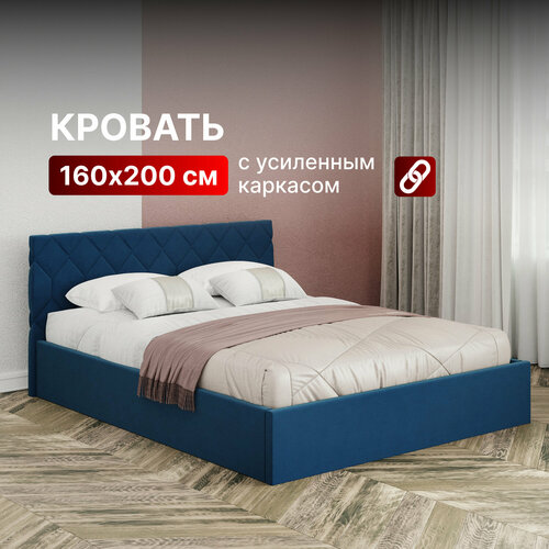 Кровать 160х200 с подъемным механизмом двуспальная Техас с ортопедическим основанием и ящиком для белья, мягкое изголовье, для спальни и дома, велюр