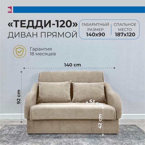 Диван - кровать Тедди. Материал Велюр. Цвет Бежевый. Размер 140*90*92. Наполнение высокоэластичный ППУ