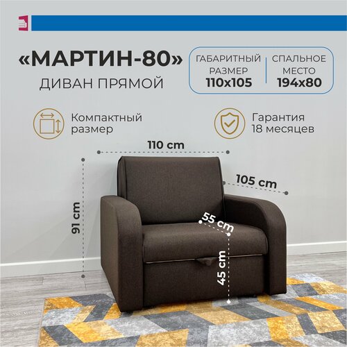 Раскладной двуспальный “Коричневый” диван кровать с ящиком, прямой трансформер диван “Аккордеон” Мартин-80, 110х105х91 см