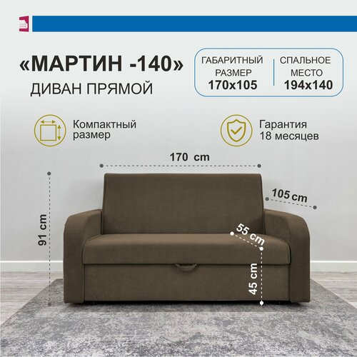 Раскладной двуспальный “Коричневый” диван кровать с ящиком, прямой трансформер диван “Аккордеон” Мартин-140, 170х105х91 см