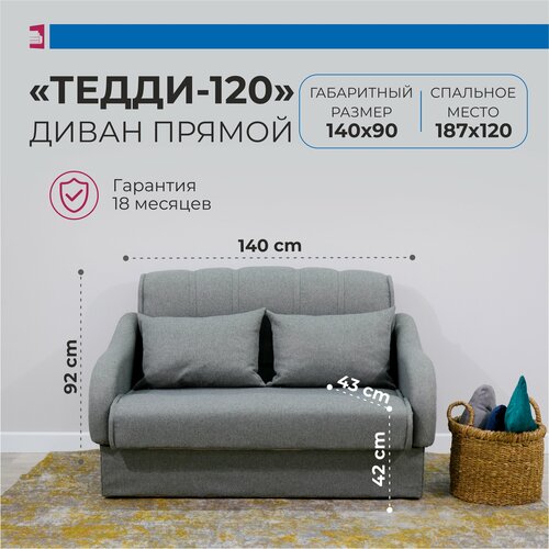 Диван - кровать Тедди. Материал рогожка. Цвет серый. Размер 140*90*92. Наполнение высокоэластичный ППУ