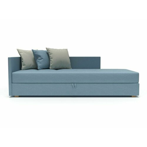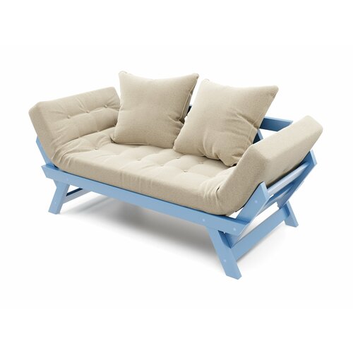 Диван кушетка Soft Element Оден, раскладная, массив дерева, подушки, рогожка, бежевый-голубой, скандинавский лофт, на кухню, в прихожую, дачная