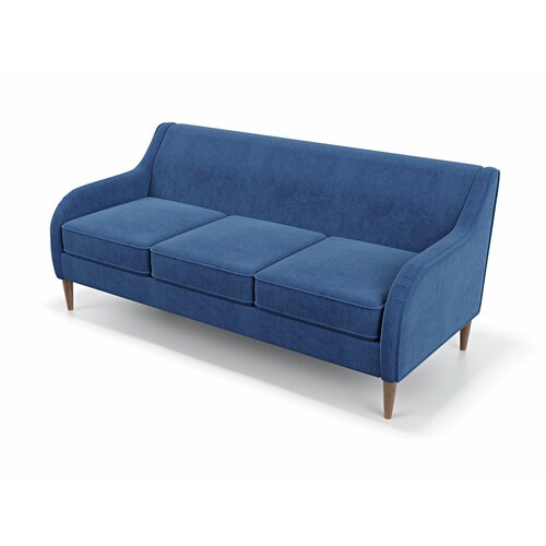 Дизайнерский прямой диван Soft Element Вектор, трехместный, деревянные ножки, велюр, синий, стиль скандинавский лофт, в гостиную, офис, на дачу