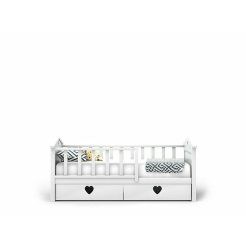 Детская кроватка Soft Element White, 168x90 массив дерева, с ящиками, белая, дизайнерская, для девочек и мальчиков