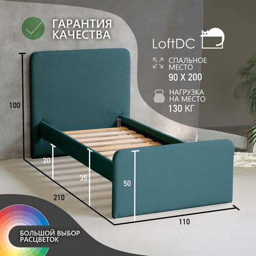 Односпальная кровать детская с мягкой спинкой Босс, 90х200 см, LoftDC, Омега 09