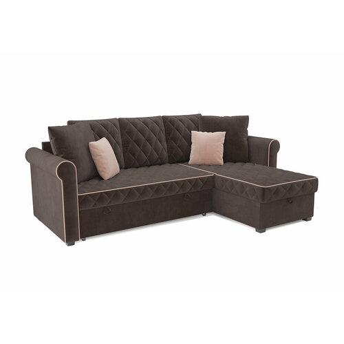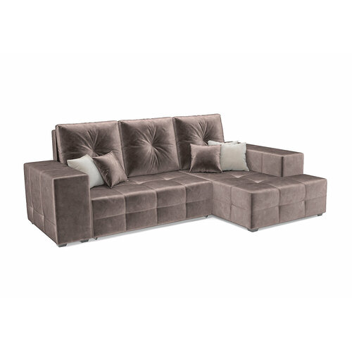 Диван угловой Мебель-АРС Монреаль еврокнижка; угол - Г; вельвет серо-коричневый 266x165x92 см