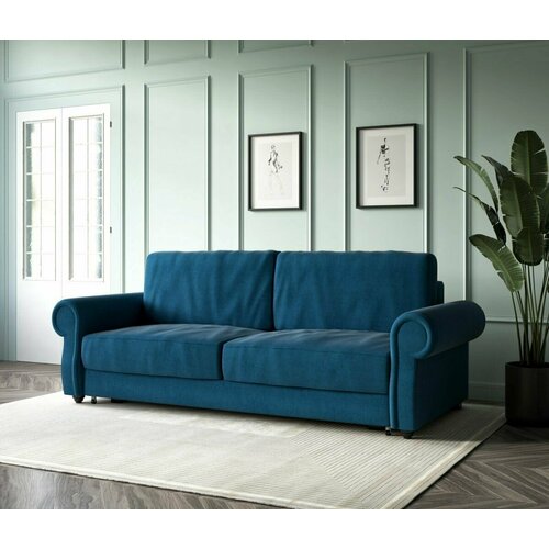 голубойДиван Баден-Баден воплощает собой современную концепцию комфорта – он легко адаптируется к различным потребностям владельцев. При необходимости увеличить число посадочных мест достаточно откинуть назад мягкие подушки-подлокотники – и они станут частью спинки. Механизм трансформации Еврокнижка позволит без дополнительных усилий превратить модель в комфортное спальное место.
