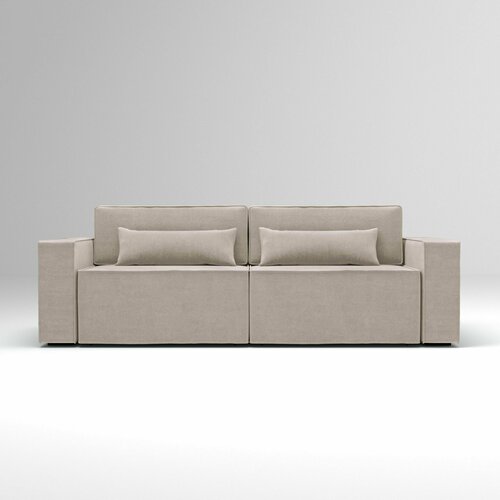 Диван прямой Эмека, 200x80 см спальное место, микровельвет бежевый