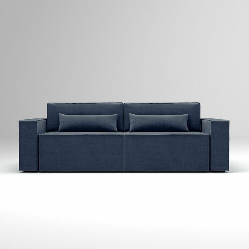 Диван прямой Дженго темно-синий, трансформер, 230x80 см спальное место, микровельвет