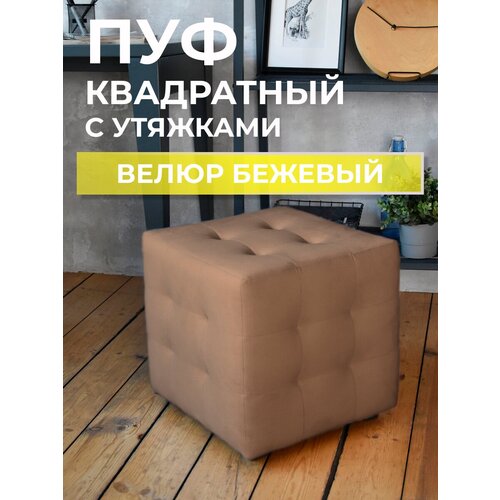 Пуфик куб с утяжками для комнаты прихожей спальни велюр Grand Family