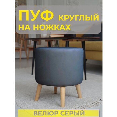Пуфик круглый на ножках для гостиной комнаты прихожей спальни велюр серый Grand Family