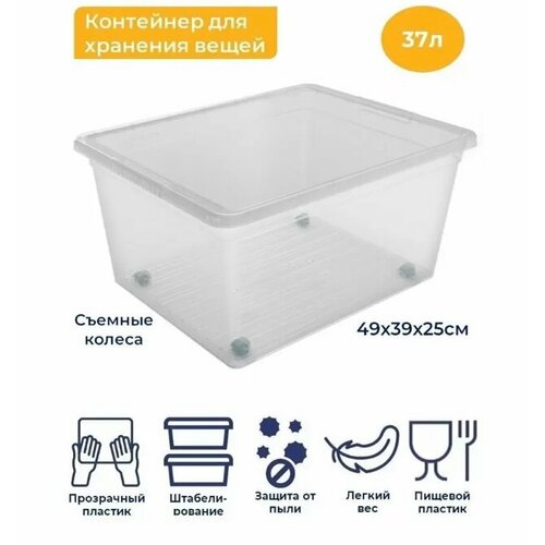Ящик - органайзер для хранения вещей, игрушек с крышкой на колесиках 37 л FunBox Basic
