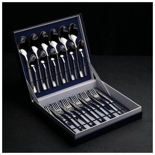 Цены на Добросталь (Нытва) Набор столовых приборов Аппетит, 18 предметов 6 18 посеребрение 24 см серебристый в г. Москва
