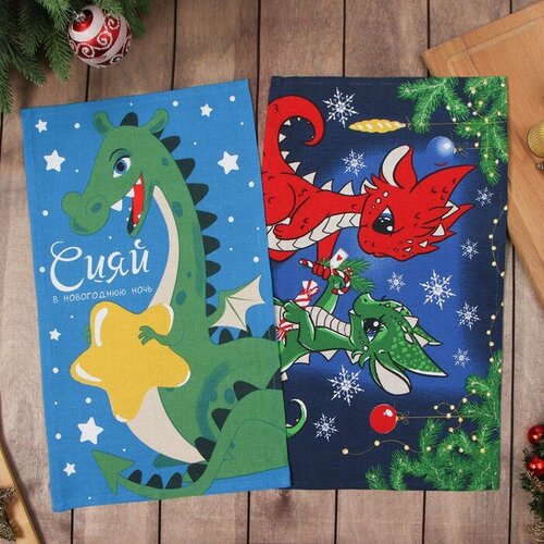 Набор полотенец Доляна "Игристого нового года" 28х46 см - 2 шт, 100% хл, рогожка 164 г/м2