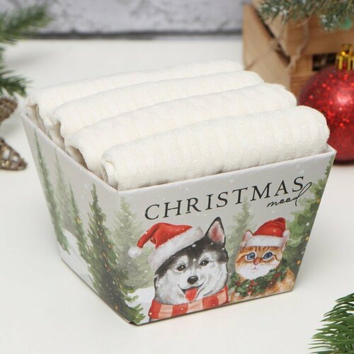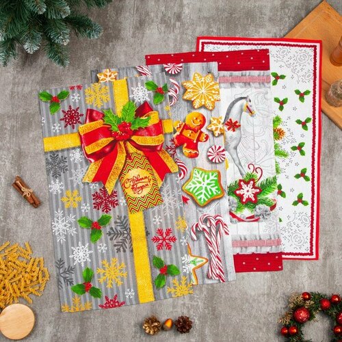 Набор кухонных полотенец Доляна «Подарок » 35х60см-4шт, 100% хлопок