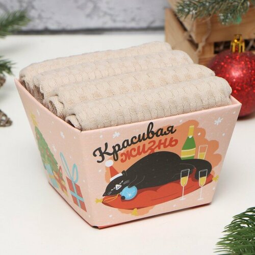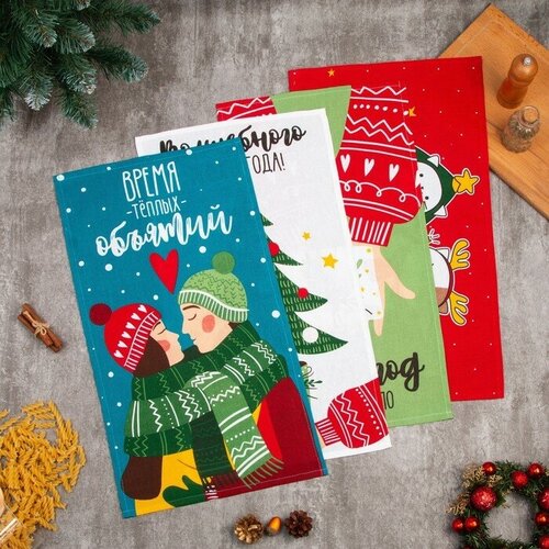 Набор кухонных полотенец Доляна «Время теплых объятий», 35х60 см-4шт, 100% хлопок, 160 г/м2