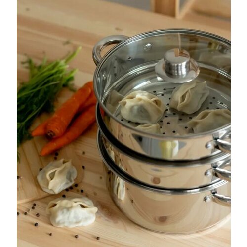 Кастрюля-Пароварка ZEIDAN 22 см - 4,5 л, нержавеющая сталь, 3-х слойное капсулированное индукционное дно, 3 яруса