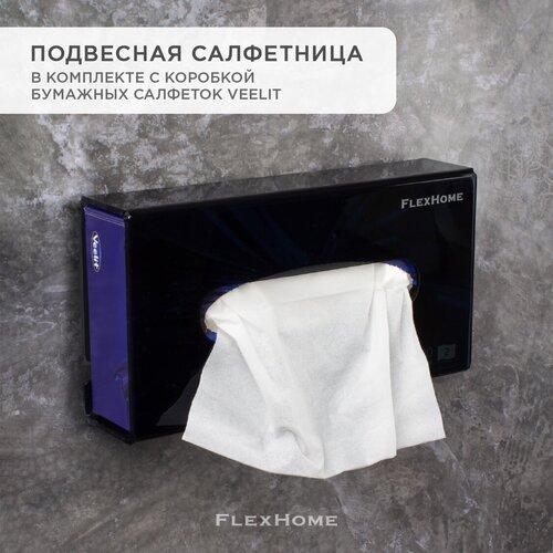 Держатель для бумажных полотенец диспенсер салфеток настенный контейнер салфетница для ванной кухни FlexHome Черный
