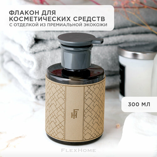 Флакон для крема с дозатором и наклейкой из экокожи FlexHome