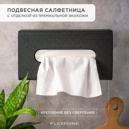 Держатель для бумажных полотенец, диспенсер салфеток, настенный контейнер, салфетница из экокожи для ванной и кухни FlexHome, цвет темно-серый